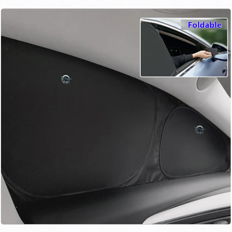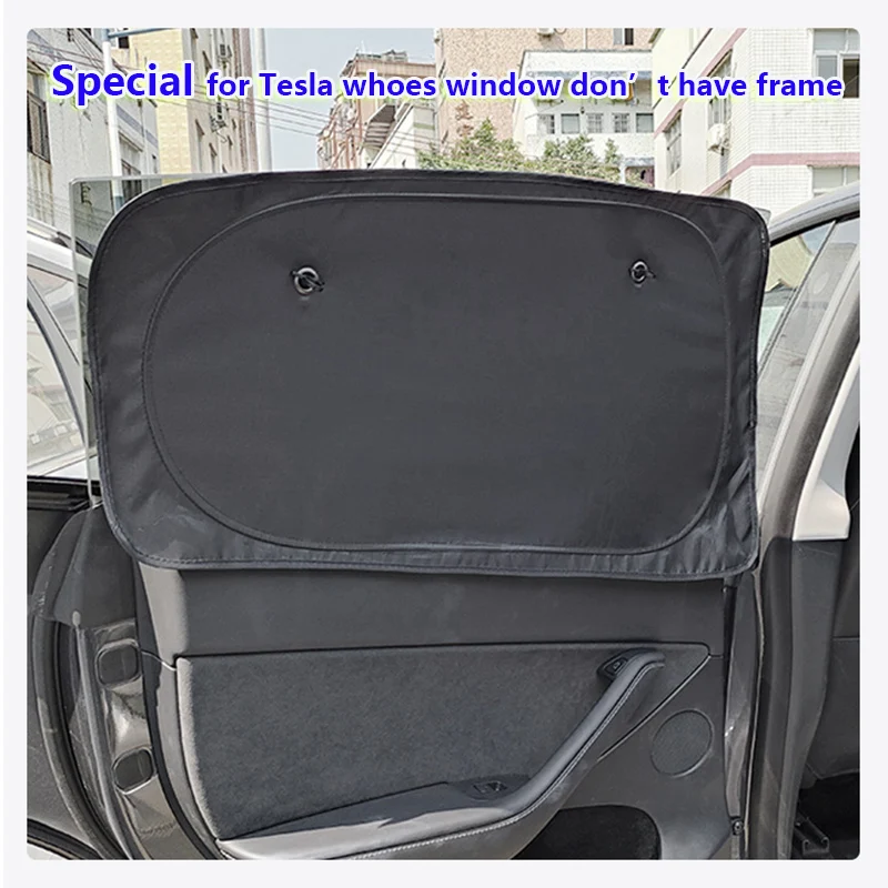 Although the window of Tesla is frameless, no problem, updatedsunshade with suction cupscan solve it.